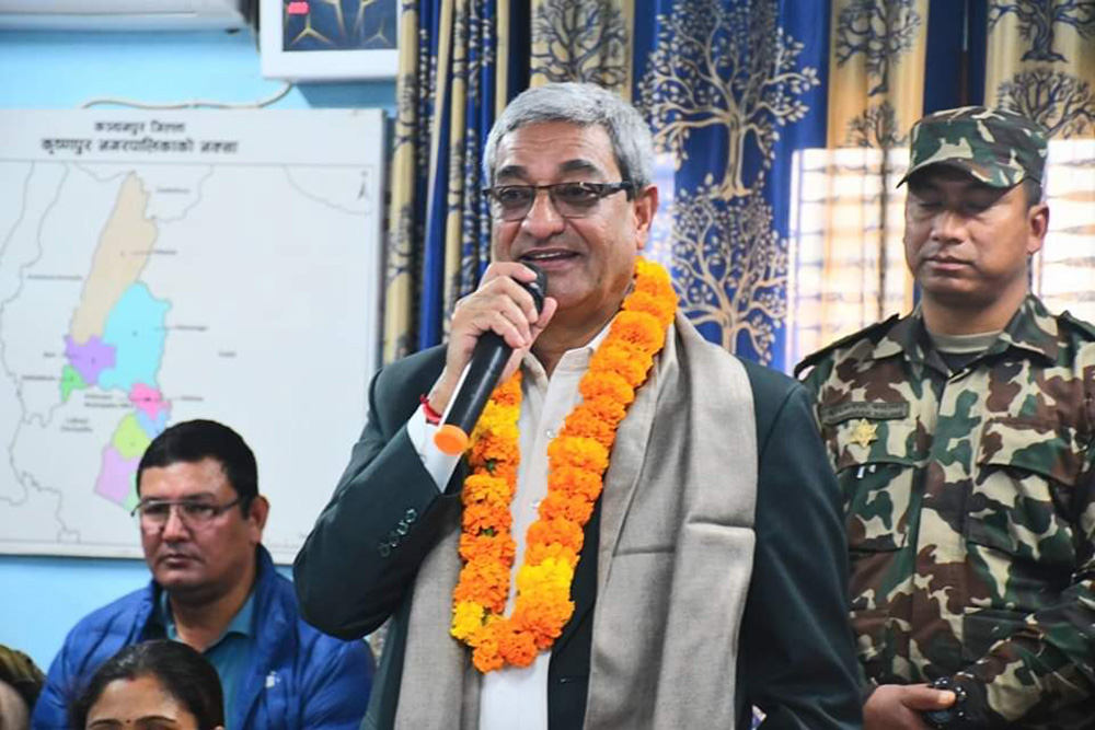 महेन्द्रनगर । गृहमन्त्री रमेश लेखकले विकासमा राजनीति गर्न नहुने बताएका छन् । बुधबार कञ्चनपुरको कृष्णपुर नगरपालिकाले आयोजना गरेको स्वागत कार्यक्रममा बोल्दै गृहमन्त्री लेखकले कसैले पनि विकासमा राजनीति गर्न नहुने बताएका हुन् ।