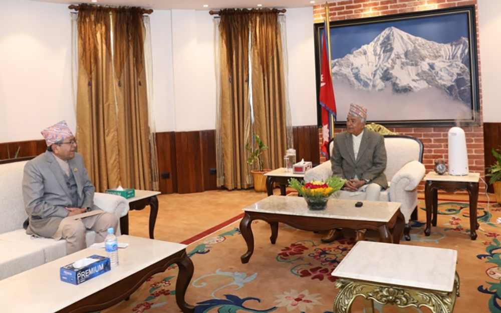 काठमाडौँ । राष्ट्रपति रामचन्द्र पौडेलसँग सभामुख देवराज घिमिरेले भेटवार्ता गरेका छन् ।