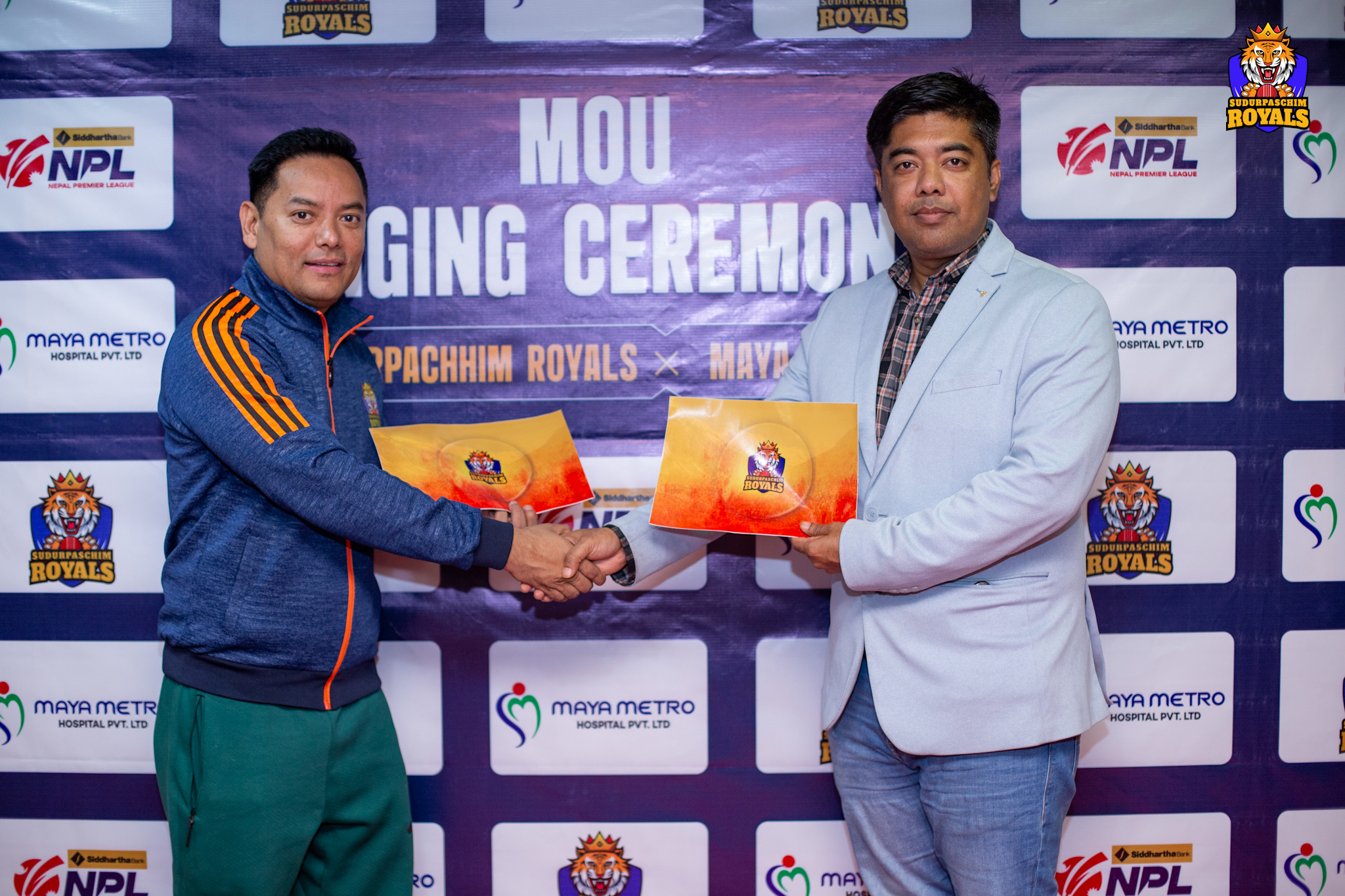 माया मेट्रो र रोयल्सबीच मेडिकल पार्टनरका लागि एक कार्यक्रमका बीच सम्झौता भएको हो। सम्झौता पत्रमा रोयल्सका मालिक स्वतन्त्र प्रताप शाह र अस्पतालका अध्यक्ष धिरेन्द्र साउदले हस्ताक्षर गरेका छन्।
