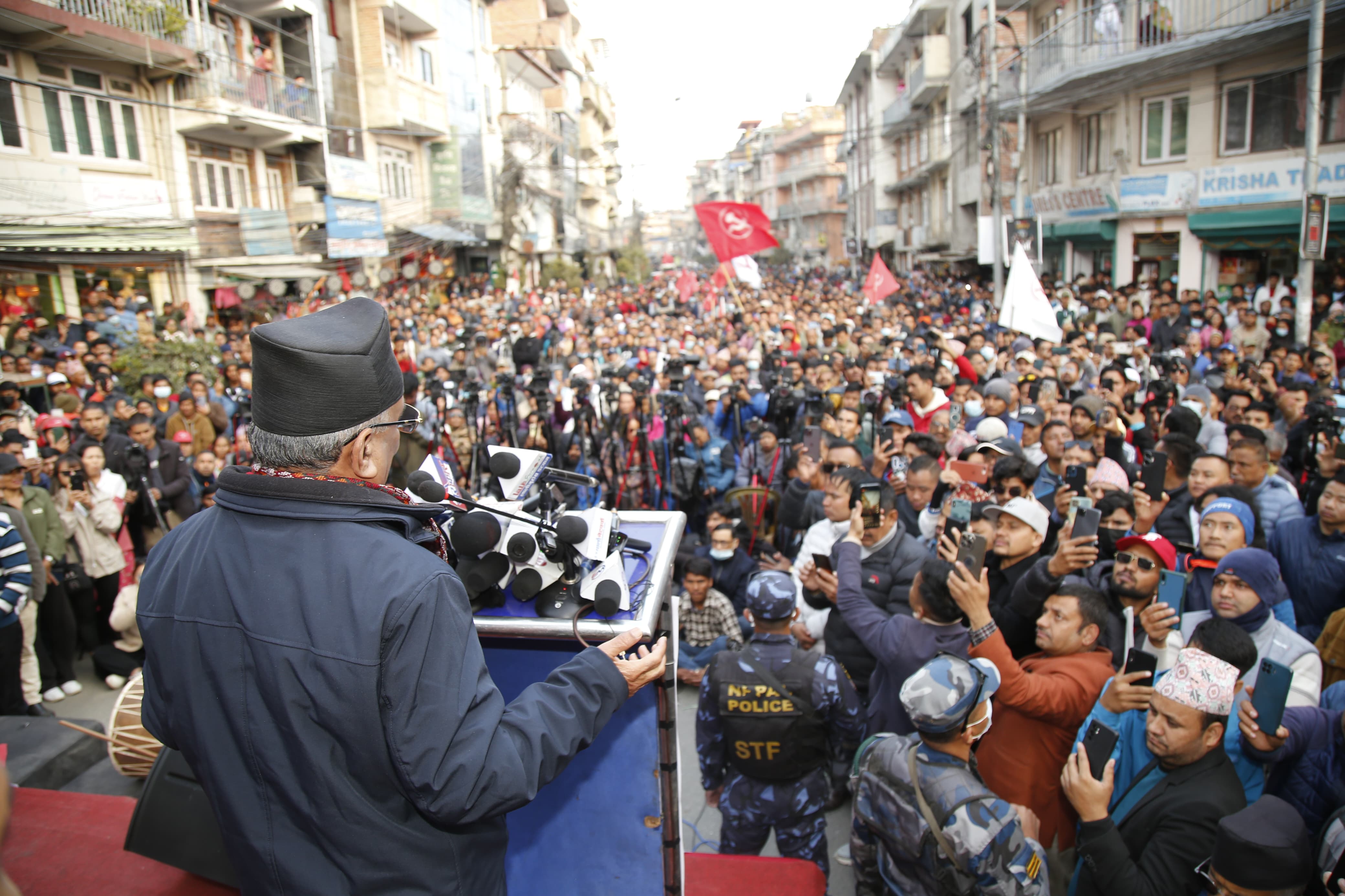 मंसिर १६ को निर्वाचनमा माओवादी केन्द्रलाई विजयी बनाउन आह्वान गर्दै अध्यक्ष प्रचण्डले भने, ‘म ऐतिहासिक अपिल गर्न चाहन्छु । यो सामान्य कुरा छैन । यो सामान्य चुनाव जित र हारको कुरा मात्रै छैन । यो नेपाली जनताले जित्ने या नेपालका दलाल विचौलियाहरू, अहिले राज्य केही विचौलियाहरूले चलाउने गरेका छन्,’ उनले भने, ‘मैले त्यही विचौलियाहरूको सेटिङ भत्काउने कोशिस गरेँ । मैले गरेको गल्ती भन्नुहुन्छ भने त्यही हो । पहिला दुई दुई पटक संसद् विघटन संविधान मिचेर गर्दा सेटिङमा भत्काइएको थियो । र यो सेटिङ भत्काउनैपर्छ भनेर हामीले ठूलो ठूलो आन्दोलन गरेका थियौँ । त्यतिबेला साँच्चै त्यो सेटिङ भत्किएको थियो ।’