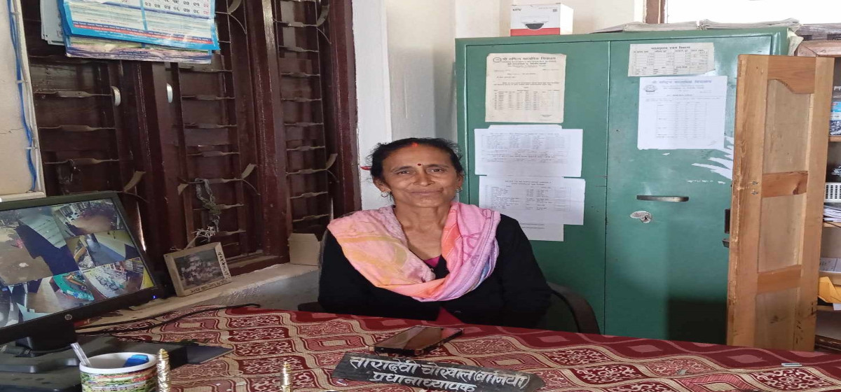 म्याग्दी । अवसर र उचित वातावरण भए महिलाले पनि कुशल नेतृत्व गर्न सक्छन् भन्ने उदाहरण बनेकी छिन् बेनी नगरपालिका–९ नेप्टेचौरकी तारादेवी चोखाल। स्थानीय राष्ट्रिय माध्यमिक विद्यालयमा विगत दुई दशकदेखि चोखालले प्रधानाध्यापकको जिम्मेवारी सम्हाल्दै आएकी छिन्। विद्यालयको पूर्वविद्यार्थी रहेकी चोखालले २०५० सालदेखि शिक्षण गर्दै आएकी छिन् भने २०६४ सालदेखि प्रधानाध्यापकको जिम्मेवारीवहन गर्दै आएकी हुन्।