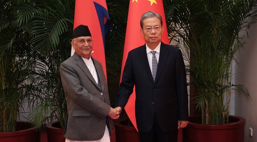 चीनको औपचारिक भ्रमणमा रहेका प्रधानमन्त्री ओलीले केहीबेर अघि अध्यक्ष लेजिसँग ग्रेट हल अफ पिपलमा भेटवार्ता गरेको प्रधानमन्त्रीको सचिवालयले जनाएको छ ।