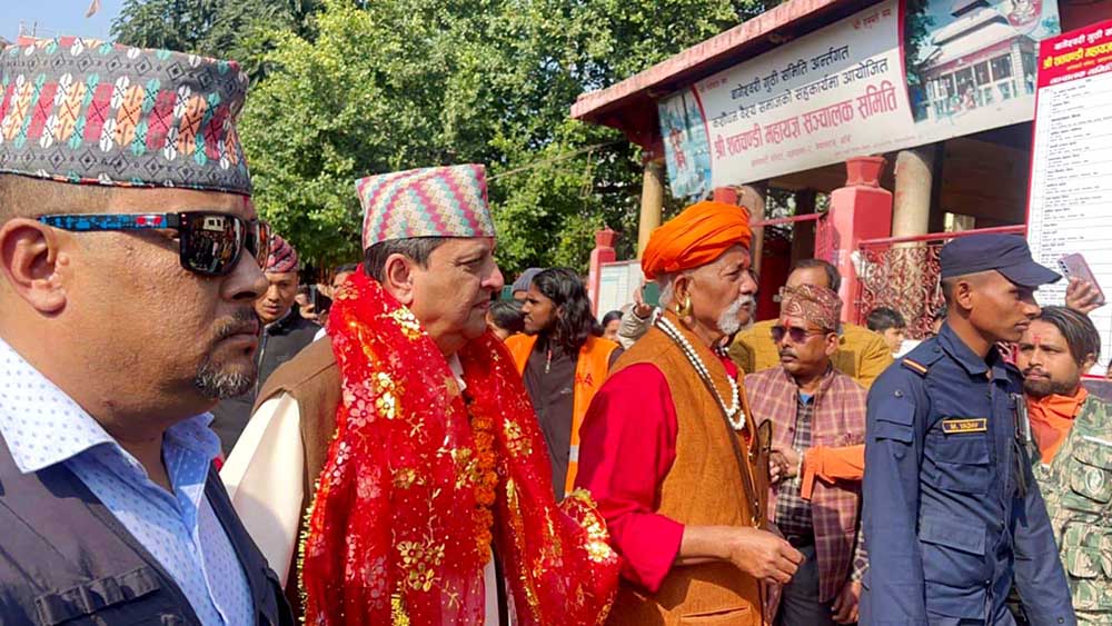 गत एक हप्तादेखि नेपालगन्जमा रहेका पूर्वराजा शाह परिवारसहित पश्चिम नेपालकै प्रसिद्ध धार्मिक आस्थाको केन्द्र बागेश्वरी मन्दिरको दर्शन गर्न पुगेका थिए । सो अवसरमा पूर्व राजा शाहलाई मन्दिरका मूल महन्त चन्द्रनाथ योगीले मन्दिर दर्शन गराउँदै पूजा गराएका थिए । सो अवसरमा पूर्व राजा शाहलाई भेट्न ठुलो संख्यामा स्थानीय बागेश्वरी मन्दिरमा पुगेको राष्ट्रिय प्रजातन्त्र पार्टीका सहमहामन्त्री ऋषिराज देवकोटाले बताए ।