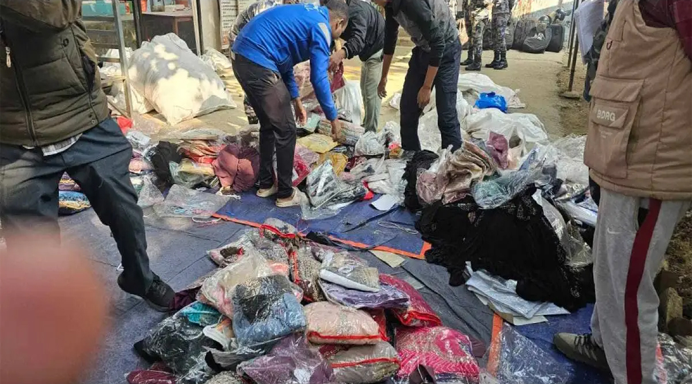 बरामद कपडामा कुर्ता सुरुवाल १ हजार ६ सय २७ पिस , स्काफ १ हजार ७ सय २२ पिस , सल २ हजार ७ सय ६८ पिस , लेडिज ब्याग, साडी पिन , लङ कोट लगायत रहेको छ ।