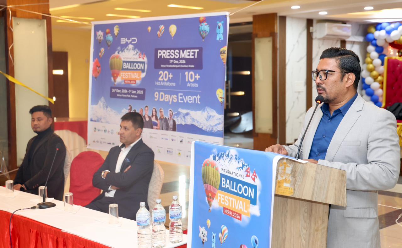 पोखरा । नेपालमा साहसिक पर्यटनलाई नयाँ उचाइमा पुर्याउन, बिवाइडी इन्टरनेशनल बेलुन महोत्सव २४ डिसेम्बर, २०२४ देखि सुरु हुदैँछ । नेपालको साहसिक पर्यटनको कोशेढुंगाको रुपमा स्थापित गर्नको लागि पोखराको पामे क्षेत्रमा अन्तराष्ट्रियस्तरको पोखरा बेलुन महोत्सव आयोजना गर्न लागेको हो ।
