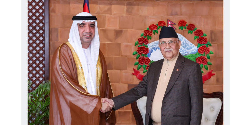 काठमाडौँ। प्रधानमन्त्री केपी शर्मा ओलीसँग नेपालका लागि संयुक्त अरब इमिरेट्स (युएई) का राजदूत अब्दुल्लाह अल शम्सीले शिष्टाचार भेट गरेको छन ।