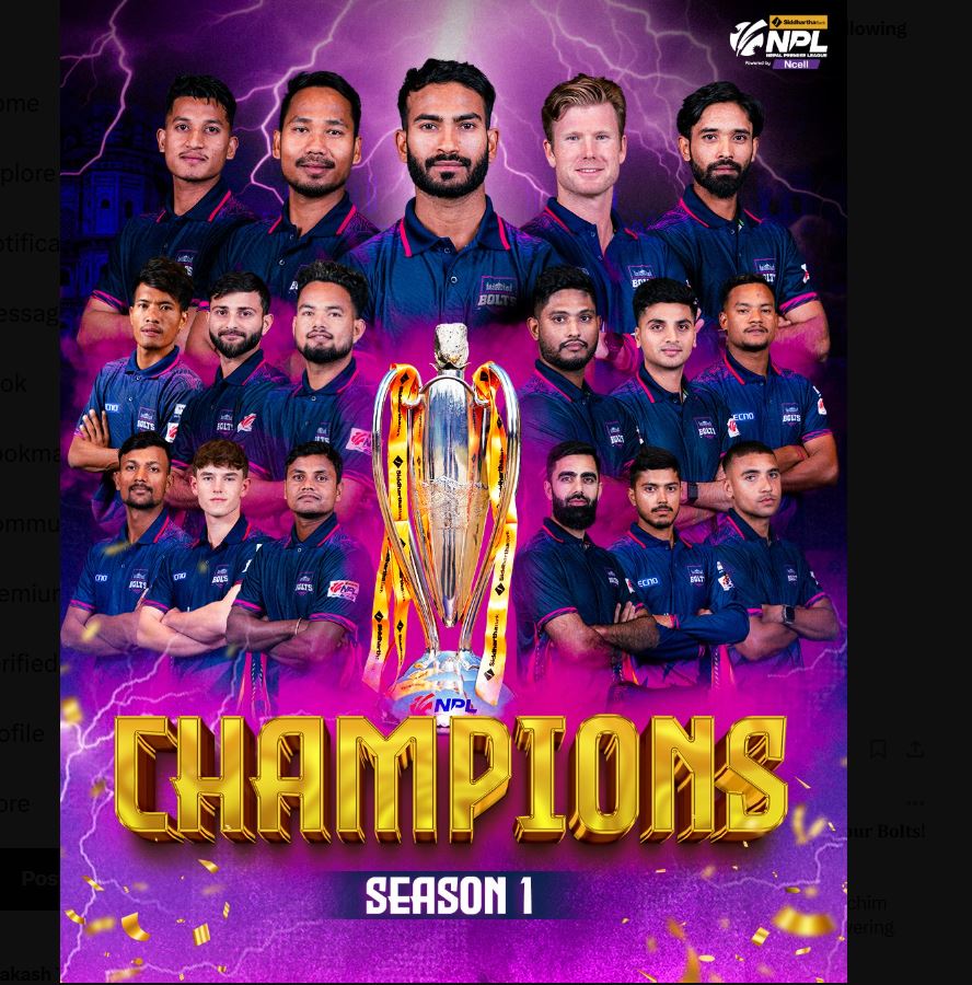 काठमाडौं । पहिलोपटक भएको देशकै ठूलो क्रिकेट प्रतियोगिता नेपाल प्रिमियर लिग (एनपीएल) को उपाधि जनकपुर बोल्ट्सले जितेको उपलक्ष्यमा पर्साको सखुवा प्रसौनी गाउँपालिकाले आज सार्वजनिक बिदा दिएको छ।