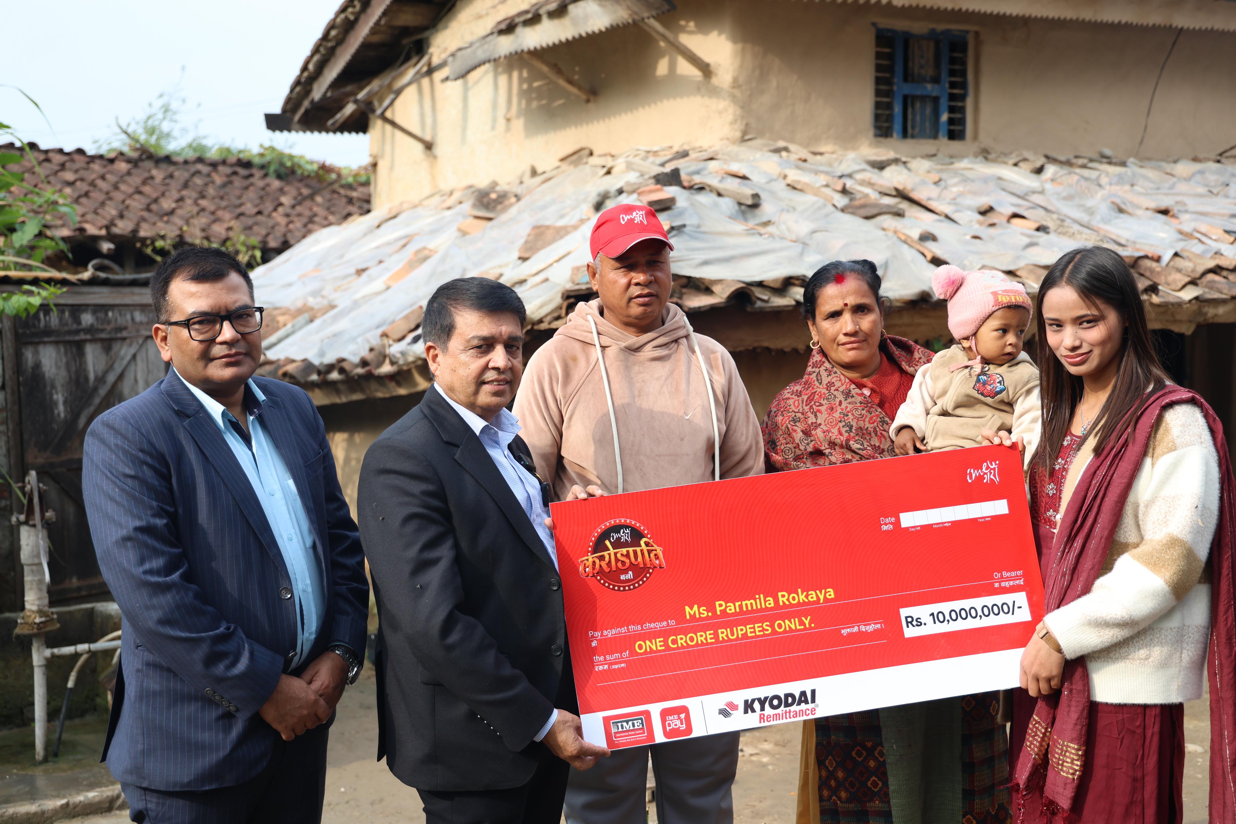 कैलालीको गोदावरी नगरपालिका– ९ स्थित बल्मी टोलकी रोकायलाई शनिवार कैलाली पुगेर ग्लोवल आइएमई बैंकका अध्यक्ष चन्द्रप्रसाद ढकालले चेक हस्तान्तरण गरेका हुन । चेक बुझेपछि प्रमिलाले आइएमईमार्फत रकम पठाउँदा प्राप्त भएको रकमबाट बुबा आमाका लागि घर बनाइदिने योजना बनाएको उनले बताइन ।
