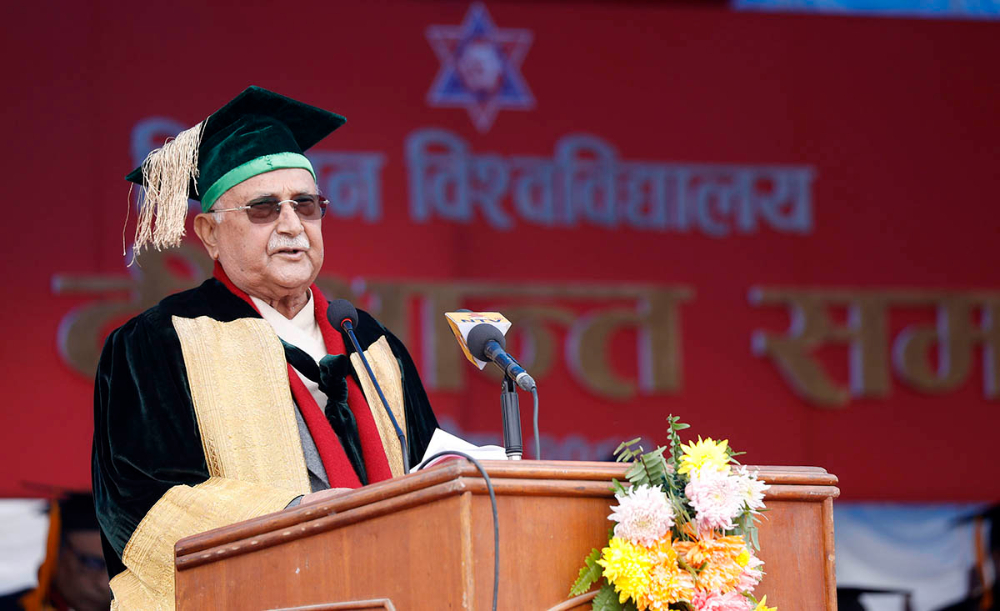 त्रिभुवन विश्वविद्यालयद्वारा आज दरशथ रंगशालामा आयोजित ५० औँ दीक्षान्त समारोहलाई सम्बोधन गर्दै विश्वविद्यालयलका कुलपति ओलीले समाजलाई लोकतान्त्रिक, सुसंस्कृत र इमानदारपूर्ण बनाउन र विद्वान हुँ भन्ने कुनै घमण्ड नगरी विनयशील हुन पनि आग्रह गरे।