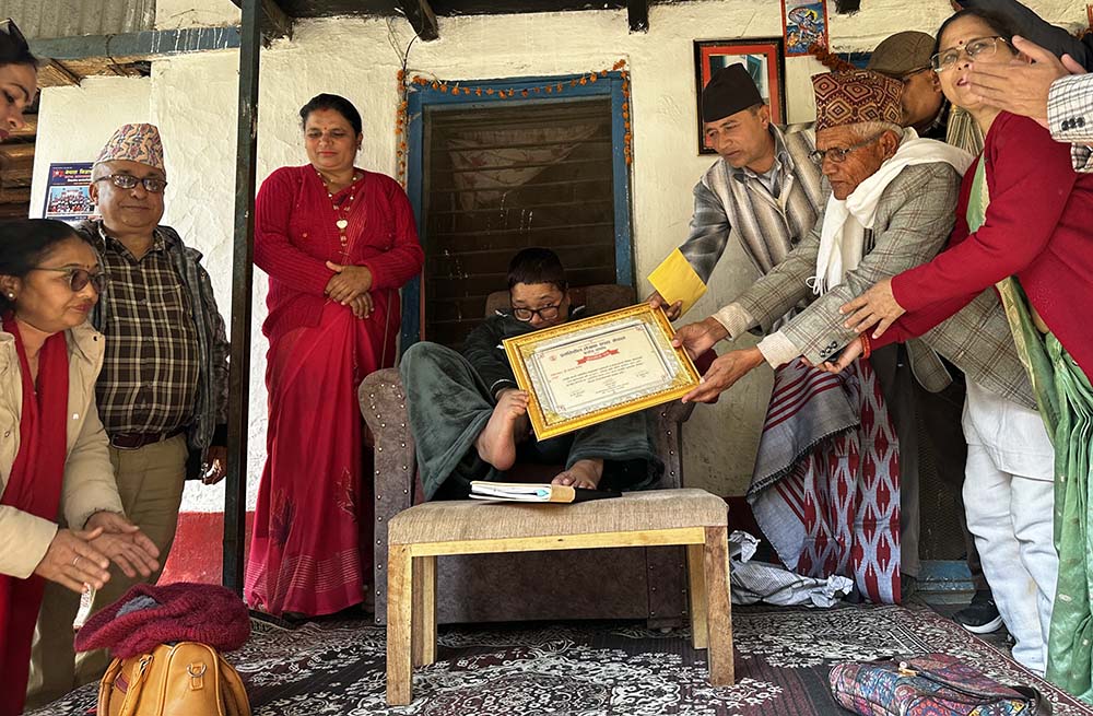 उनलाई प्रमुख अतिथि पूर्व सांसद तथा झमक घिमिरे प्रतिष्ठानका अध्यक्ष गोपाल गुरागाईं, जिल्ला प्रशासन कार्यालय धनकुटाका प्रमुख जिल्ला अधिकारी टुवराज पोख्रेल, धनकुटा नगरपालिकाका उपप्रमुख भिमादेवी खनाल, प्रलेस उपाध्यक्ष नमुना शर्मा लगायतले नगदसहित दोसल्ला ओढाएर सम्मानपत्रले सम्मान गरेका हुन् ।