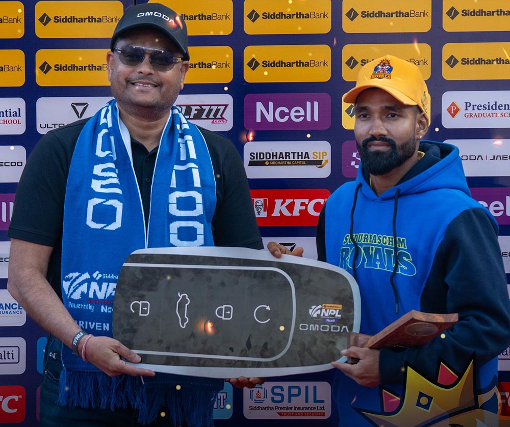 सोमबारनै नेपाल प्रिमियर लिग (एनपिएल) मा उत्कृष्ट नेपाली खेलाडी बन्न सफल सुदूरपश्चिम रोयल्सका कप्तान एरीलाई पुरस्कार बापतको कार पनि प्रदान गरिएको छ । अघिल्लो साता सम्पन्न एनपिएललाई ओमोडा एन्ड जेइले सहप्रायोजन गरेको थियो ।