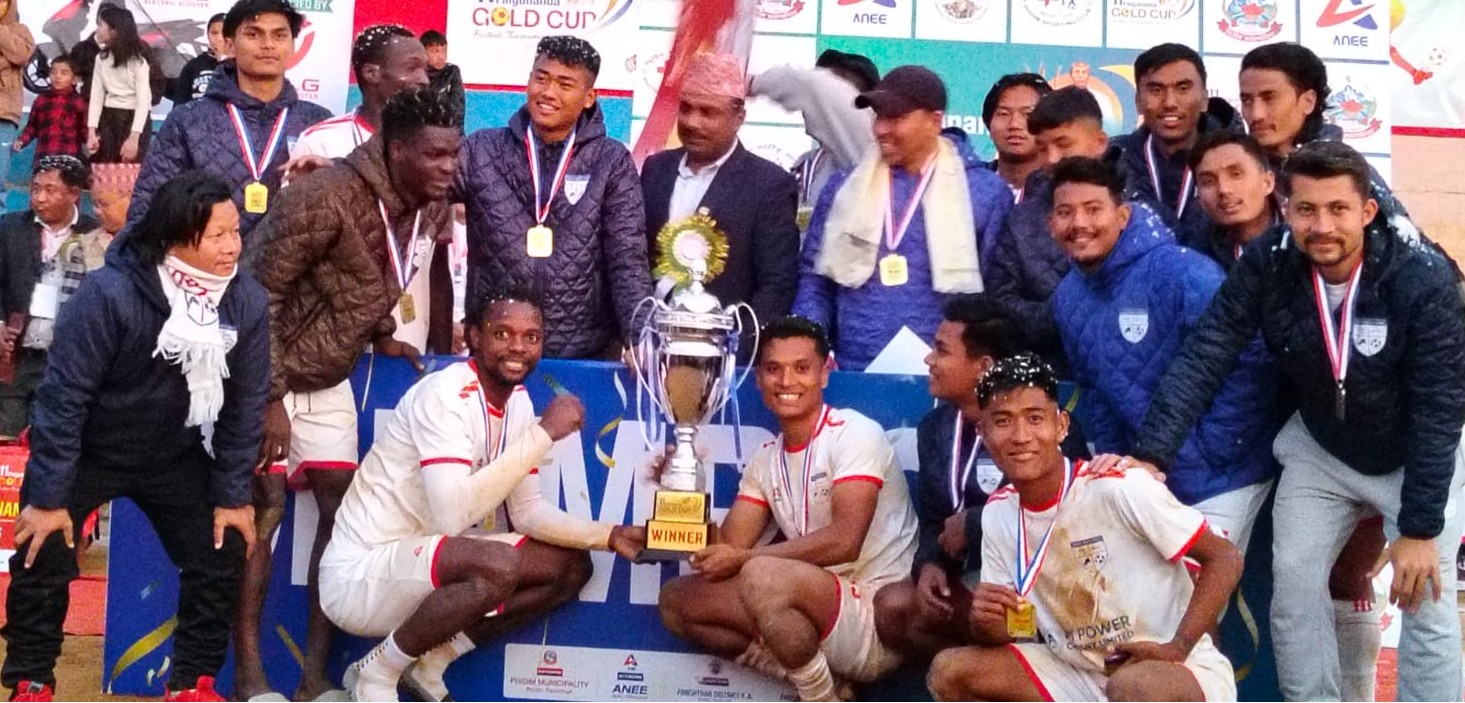 पाँचथर । फाल्गुनन्द गोल्डकपको उपाधि चर्च ब्वाइज क्लबले जितेको छ । फिदिम माविको मैदानमा सोमबार भएको फाइनल खेलमा चर्च ब्वाइजले मच्छिन्द्र फुटबल क्बललाई टाइब्रेकरमा ५–४ गोलले हरायो ।