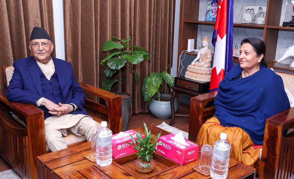 काठमाडौं । प्रधानमन्त्री केपी शर्मा ओली र पूर्व राष्ट्रपति विद्यादेवी भण्डारीबिच बुधबार भेटवार्ता भएको छ ।