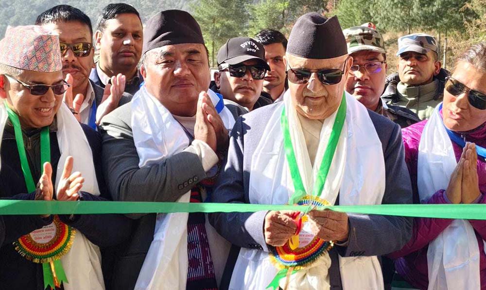 सोलुखुम्बु । प्रधानमन्त्री केपी शर्मा ओलीले सोलुखुम्बुको पर्यटकीय क्षेत्रमा रहेको खुम्बु पासाङल्हामु गाउँपालिकाको केन्द्र चौरीखर्क ‘ङिमदोर्जी शेर्पा पर्यटन सडक’ को कालोपत्रे छिट्टै हुने बताएका छन् । खुम्बु पासाङल्हामु गाउँपालिका केन्द्र जोड्ने ‘ङिमदोर्जी शेर्पा पर्यटन सडक’ को उद्घाटनका अवसरमा सुर्के पुगेका प्रधामन्त्री ओलीले तेन्जिङ हिलारी विमानस्थल लुक्लाले सहज बनाएको खुम्बुको पर्यटन व्यवसाय अहिले सञ्चालनमा आएको सडकले थप सहज भएको उल्लेख गरे ।