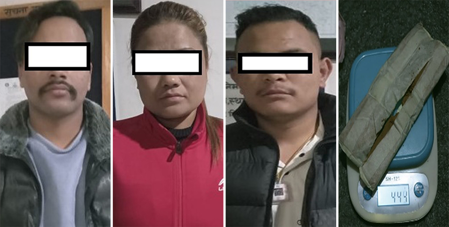 प्रहरीले नुवाकोटको पञ्चकन्या गाउँपालिका–१ घर भई काठमाडौं टोखा नगरपालिका–१ झोर बस्ने २६ वर्षीय सुजन नेपाली, सिन्धुपाल्चोकको चौतारा साँगाचोकगढी नगरपालिका–३ घर भई काठमाडौं गोकर्णेश्वर बस्ने ३२ वर्षीया अनिता तामाङ भनिने मिनसाङ लामा तामाङ र काभ्रेको तेमाल गाउँपालिका–१ घर भई काठमाडौं महानगरपालिका–६ बस्ने २२ वर्षीया लालबहादुर तामाङलाई सुन तस्करीको आरोपमा पक्राउ गरेको हो ।