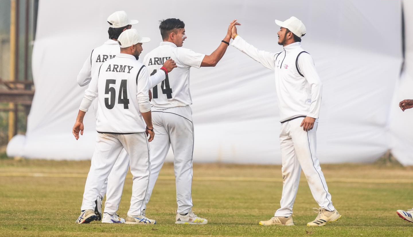 यसअघि टस हारेर पहिले ब्याटिङको निम्तो पाएको आर्मीले निर्धारित ६० ओभरमा पाँच विकेटको क्षतिमा दुई सय ७६ रन बनाएको थियो । आर्मीका लागि इम्रान शेखले ७२ रन बनाए । उनले एक सय चार बलमा बलमा ११ चौकाको सहयोगमा उक्त रन बनाए । यस्तै बसिर अहमदले ६४ बलमा आठ चौकाको सहयोगमा अविजित ५३, तृतराज दासले ४४, कुशल मल्लले अविजित ३५ र भीम सार्कीले ३२ रन बनाए । बिलङमा बागमतीका विपिन आचार्यले तीन तथा कप्तान सन्दीप लामिछानेले दुई विकेट लिए ।