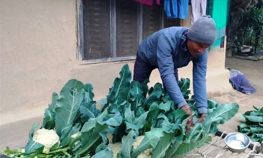 ‘काउलीमात्र बेचेर ५० हजार रुपैयाँ जतिको आम्दानी भएको छ’, वडाध्यक्ष चौधरीले भने, ‘पहिलो पटक लगाएको काउली बेचिसक्यौं, दोस्रो पटक लगाएको काउली आउँदो महिना बेच्न ठीक्क हुन्छ ।’ काउलीबाहेकको अन्य तरकारी २० हजार रुपैयाँ जतिको बेचेको उनी बताउँछन् । ‘बारीमा प्याजका बेर्ना रोप्न तयार भएका छन्’, अध्यक्षकी श्रीमती सावित्रीले भनिन्, ‘आलु खन्ने अवस्थामा छन्, आलु खनेर प्याज रोप्छौं ।’