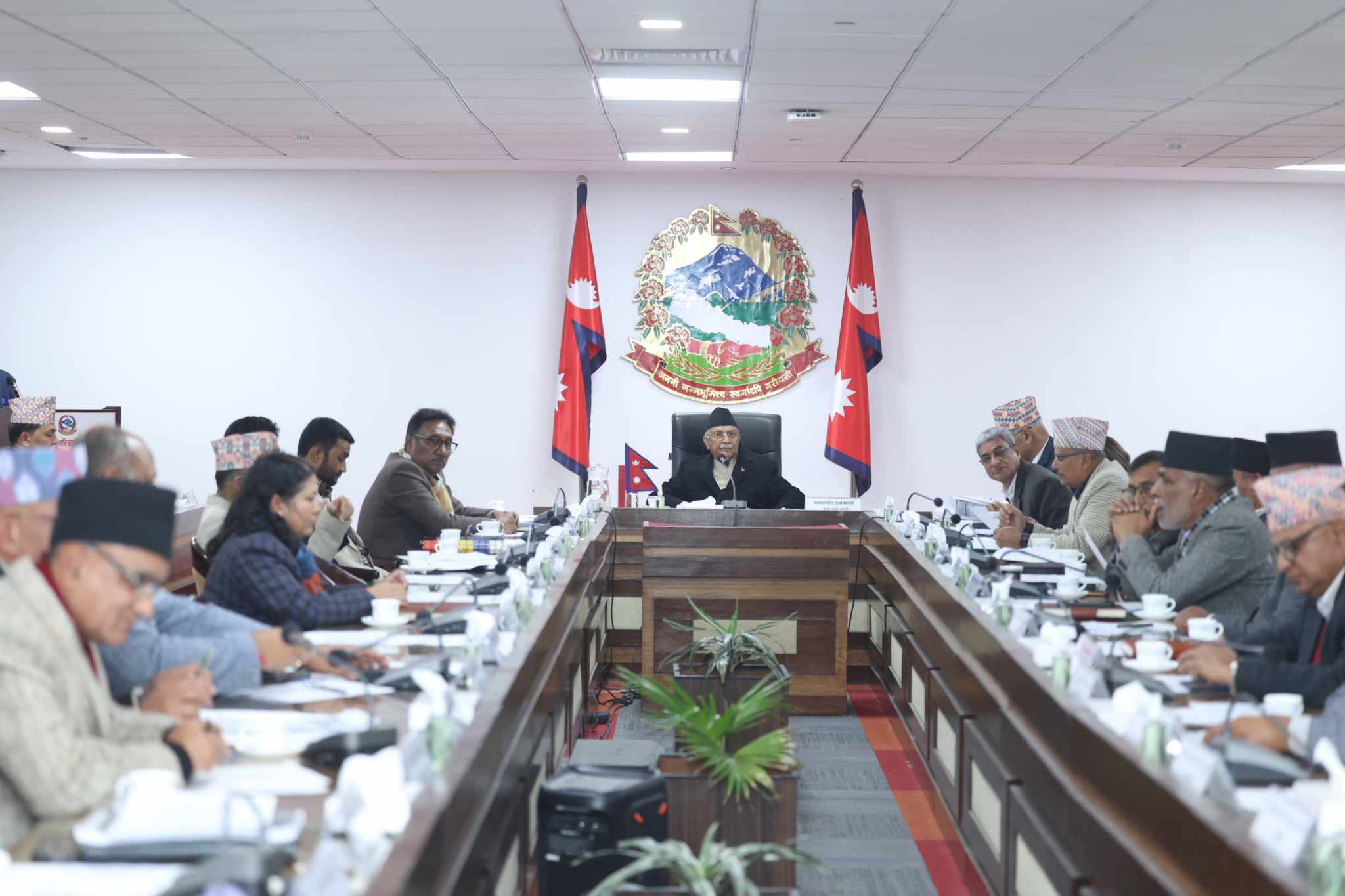 बैठकमा उपप्रधानमन्त्री एवं अर्थमन्त्री विष्णुप्रसाद पौडेल, गृहमन्त्री रमेश लेखक, मन्त्रीगण, विभिन्न प्रदेशका मुख्यमन्त्रीहरु, प्रमुख प्रतिपक्षी दलको नेताका प्रतिनिधि शक्तिबहादुर बस्नेत, नेपाल सरकारका मुख्यसचिव, प्रधानसेनापतिसहित सुरक्षा निकायका प्रमुखलगायतको सहभागिता थियो ।