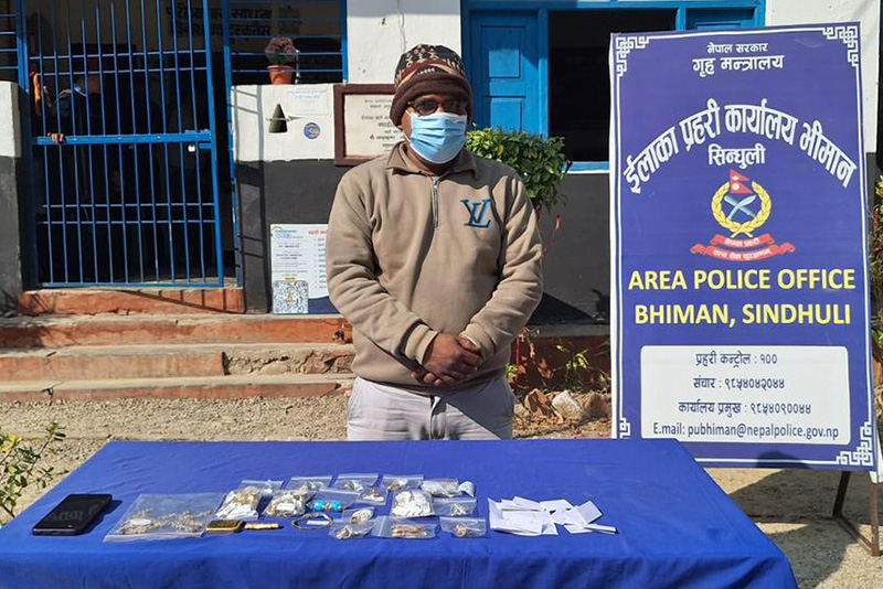 विशेष सूचनाका आधारमा भिमान चेकपोस्टमा चेकजाँच गर्दा साहको साथबाट औठी त्रीहत्तर थान, मंगलसुत्र पाँच थान, झुम्का–टप छ थान, बाला एक थान, नेकलेस एक थान, हिरा जस्तो देखिने सेतो टल्कने पत्थर कागजको सानो सानो पोकामा बाह्र थान, मोवाईल एक थान र १९ हजार नगद समेत प्रहरीले बरामद गरेको छ । उनलाई नियन्त्रणमा लिई थप अनुसन्धान भईरहेको प्रहरीले जनाएको छ ।