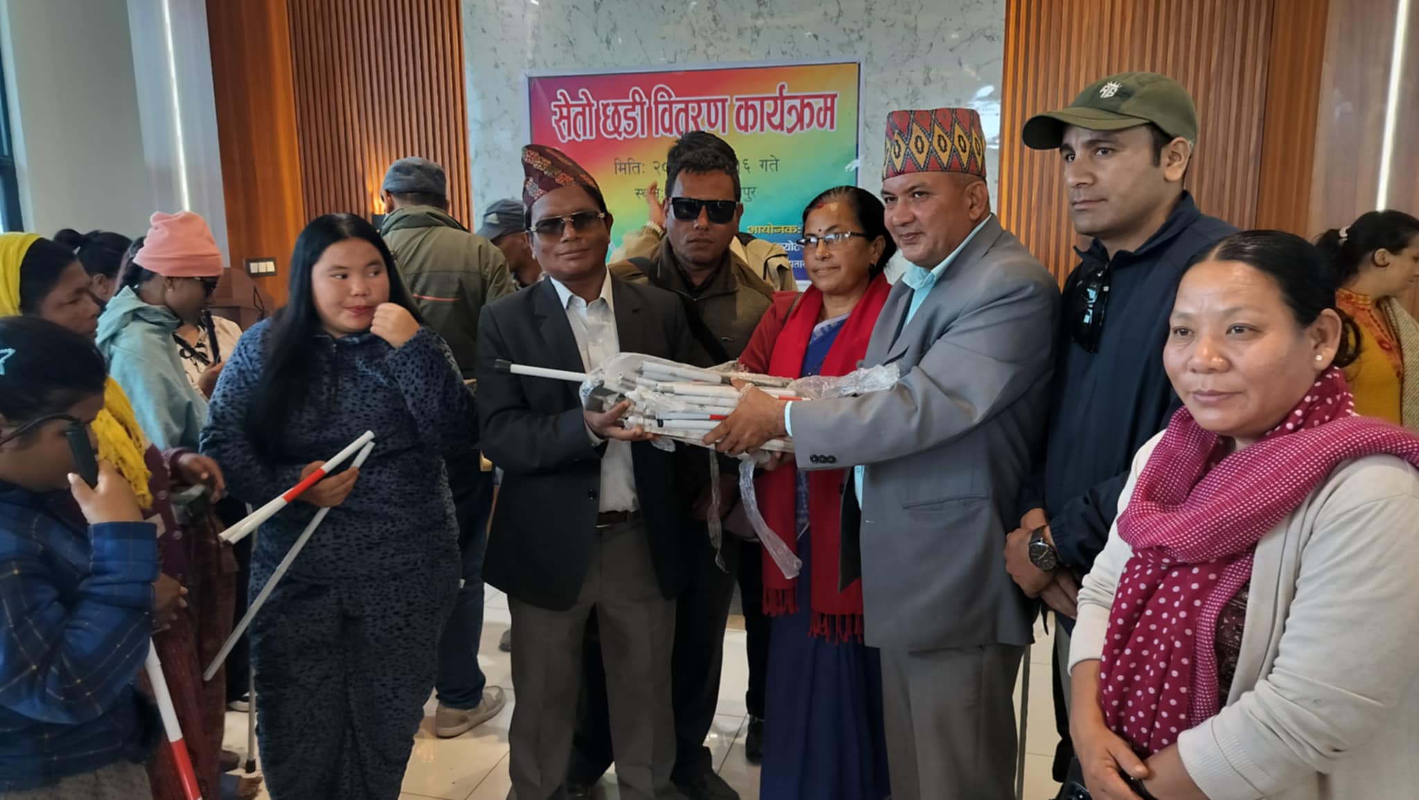 बुधबार नेत्र ज्योति संघले बुधबार एक कार्यक्रमको आयोजना गरी छडी वितरण गरेको थियो । सेतो छडी पाएसंगै दृष्टिबिहीनहरु खुसि व्यक्त गरेका थिए । दृष्टिबिहीनहरुलाई पुर्व सहरी विकास राज्यमन्त्री तथा नेकपा एमालेका पोलिटव्युरो सदस्य मन्जुकुमारी चौधरीले हस्तान्तरण गरेकी थिइन् ।