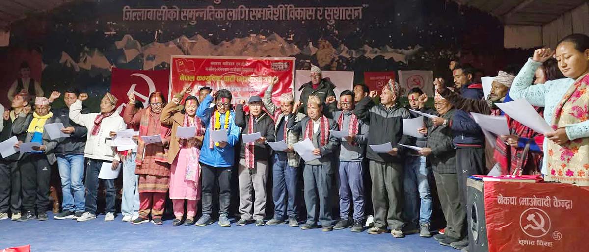 ताप्लेजुङ । ताप्लेजुङमा नेकपा (माओवादी केन्द्र) ले तीनवटा स्थानीय तहमा पालिकास्तरीय अधिवेशन सम्पन्न गरेको छ । सदरमुकामस्थित फुङ्लिङ नगरपालिकासहित तीन स्थानीय तहमा नयाँ कमिटी चयन गर्दै माओवादीले पालिकास्तरीय अधिवेशन सम्पन्न गरेको हो ।