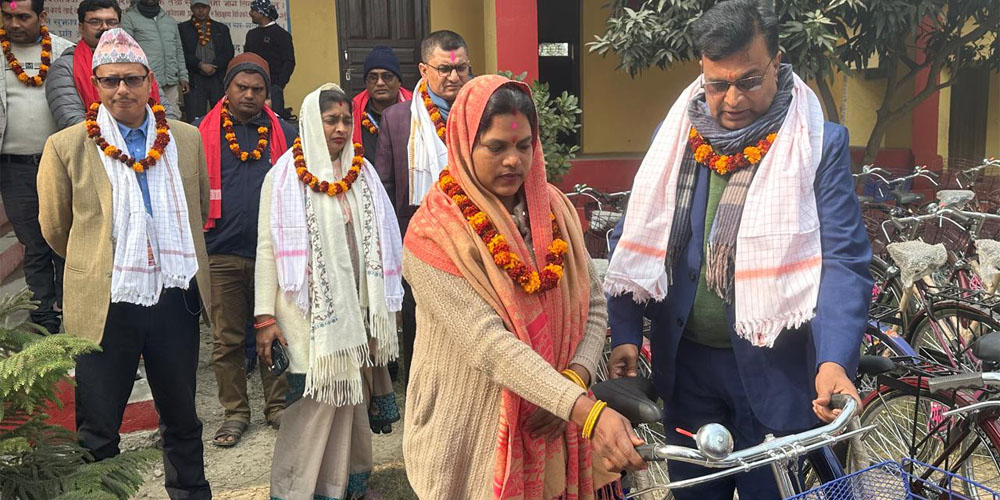 अत्यन्तै न्यून पारिश्रमिक लिएर गाउँघरमा स्वास्थ्य सेवा प्रवाह गर्न उच्च योगदान पुर्याउने महिला स्वास्थ्य स्वयंसेविकालाई प्रोत्साहनस्वरुप नगरभित्र यसरी पहिलो पटक साइकल उपलब्ध गराइएको नगरप्रमुख देवेन्द्रकुमार यादवले जानकारी दिए ।