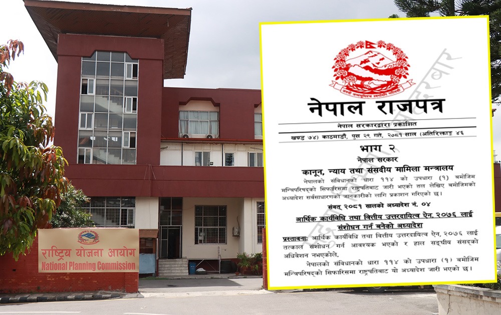 काठमाडौं । सरकारले ल्याएको अध्यादेशले बजेट निर्माण प्रक्रियामा राष्ट्रिय योजना आयोगको भूमिकालाई अंकुश लगाएको देखिएको छ ।
