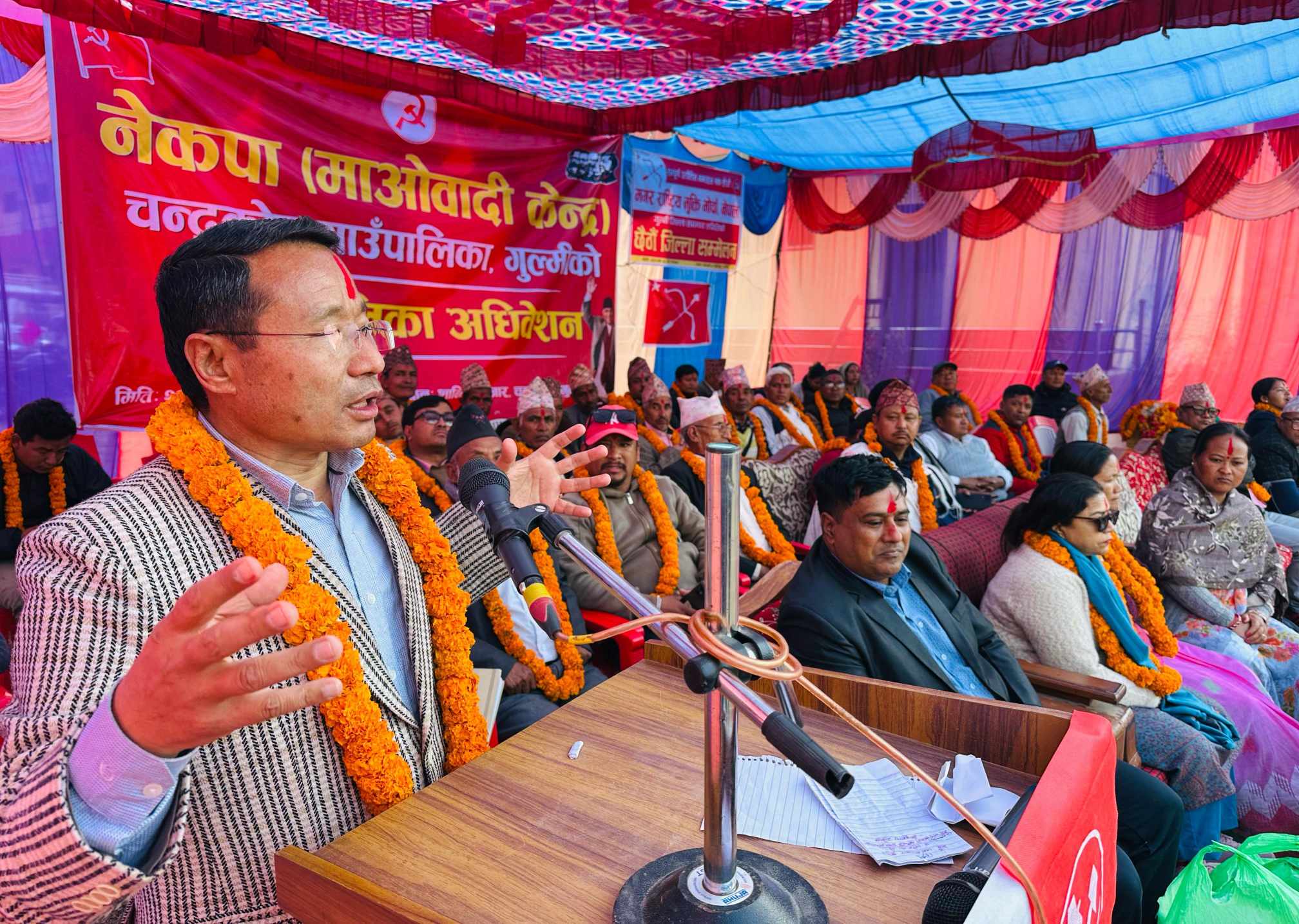 गुल्मी । नेपाल कम्युनिष्ट पार्टी (माओवादी केन्द्र) का उपमहासचिव एवं पूर्वमन्त्री वर्षमान पुनले वर्तमान व्यवस्थाको हकदार माओवादी रहेको बताएका छन् । गुल्मीको चन्द्रकोट गाउँपालिकामा पार्टीको तेस्रो अधिवेशनलाई सम्वोधन गर्ने क्रममा उनले यस्तो बताएका हुन् ,