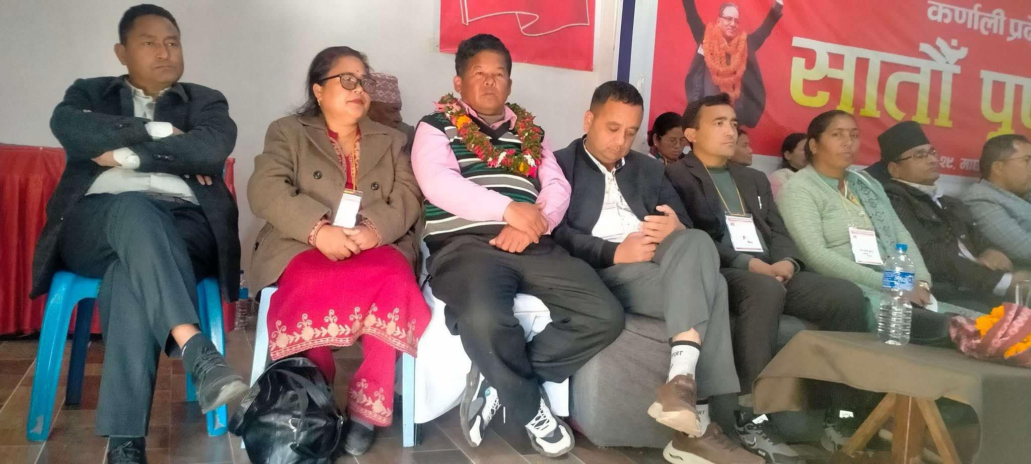 मल्ललाई पार्टीको कर्णालि प्रदेश समितिको सातौं बैठकमा सहभागी हुन सुर्खेत आएका अध्यक्ष पुष्पकमल दाहाल प्रचण्डले खादा र माला लगाई पार्टीमा स्वागत गरेका थिए ।