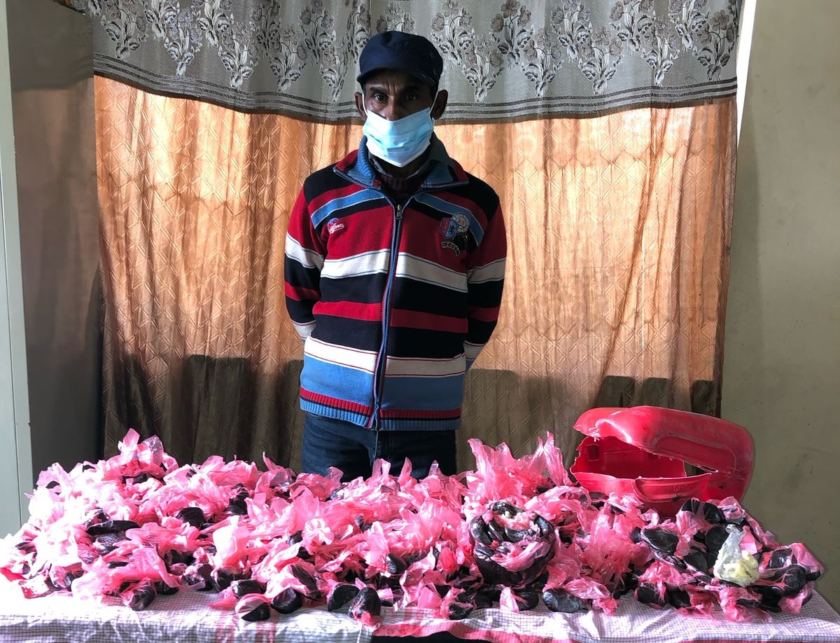 कर्णले रातो रंगको ग्यालेन बोकेका थिए। माथि घ्यू राखेर रातो प्लाष्टिकमा पोको पारी ग्यालेनभित्र ११ किलो ५०० ग्राम चरेस लुकाएर भारत लैजाँदै गरेको अवस्थामा कर्ण पक्राउ परेको प्रहरी नायब उपरीक्षक लम्सालले बताए।
