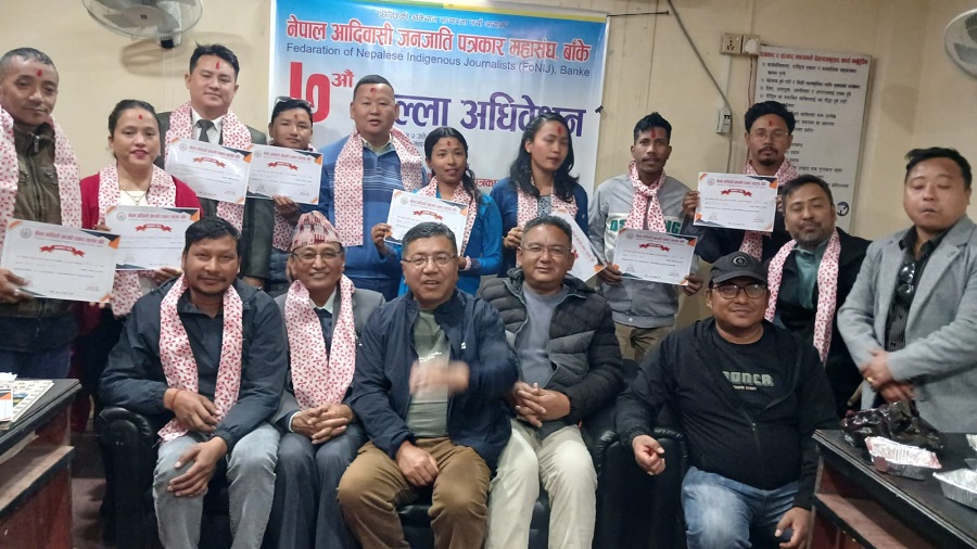 बाँके । नेपाल आदिवासी जनजाति पत्रकार महासंघ (फोनिज) बाँकेको अध्यक्षमा अशोक थापा निर्वाचित भएका छन् । शुक्रबार नेपालगन्जमा सम्पन्न भएको जिल्लाको सातौँ अधिवेशनबाट थापा अध्यक्षमा सर्वसम्मत रुपमा निर्वाचित भएका हुन् ।
