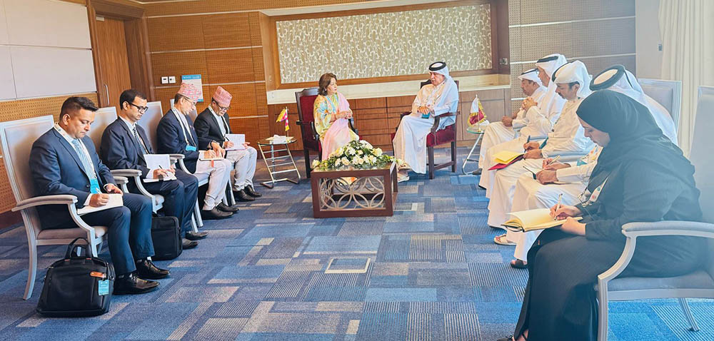 आठौँ हिन्द महासागरीय सम्मेलनमा सहभागिताका लागि ओमनको मस्कटमा रहेका उनीहरुबीच आज साइडलाइन भेट भएको हो। सो भेटका क्रममा उहाँहरुबीच नेपाल कतारबीचको सम्बन्ध, द्विपक्षीय हित र पारस्पारिक लाभका विविध विषयका साथै कतारमा नेपाली विद्यार्थीलाई छात्रवृत्ति तथा दक्ष प्राविधिक जनशक्तिलगायतका विषयमा कुराकानी भएको थियो।