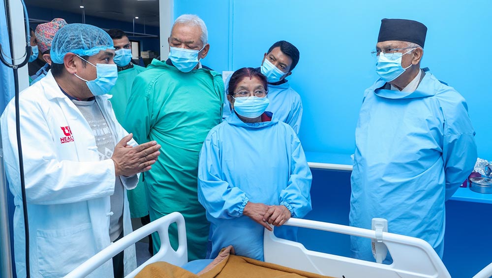प्रधानमन्त्री ओलीसँगै उनिहरुको स्वास्थ्य अवस्था बुझ्न ओली पत्नी राधिका शाक्यसमेत कीर्तिपुर अस्पताल पुगेकी थिइन् । प्रधानमन्त्रीका प्रेस संयोजक प्रकाश सिलवालले भने, ‘‘प्रधानमन्त्री केपी शर्मा ओली र र राधिका शाक्यले कीर्तिपुर अस्पतालमा उपचाररत उपप्रधानमन्त्री एवं अर्थमन्त्री विष्णुप्रसाद पौडेल र पोखरा महानगरपालिकाका प्रमुख धनराज आचार्यको स्वास्थ्य अवस्थाबारे जानकारी लिनुभएको छ ।’’