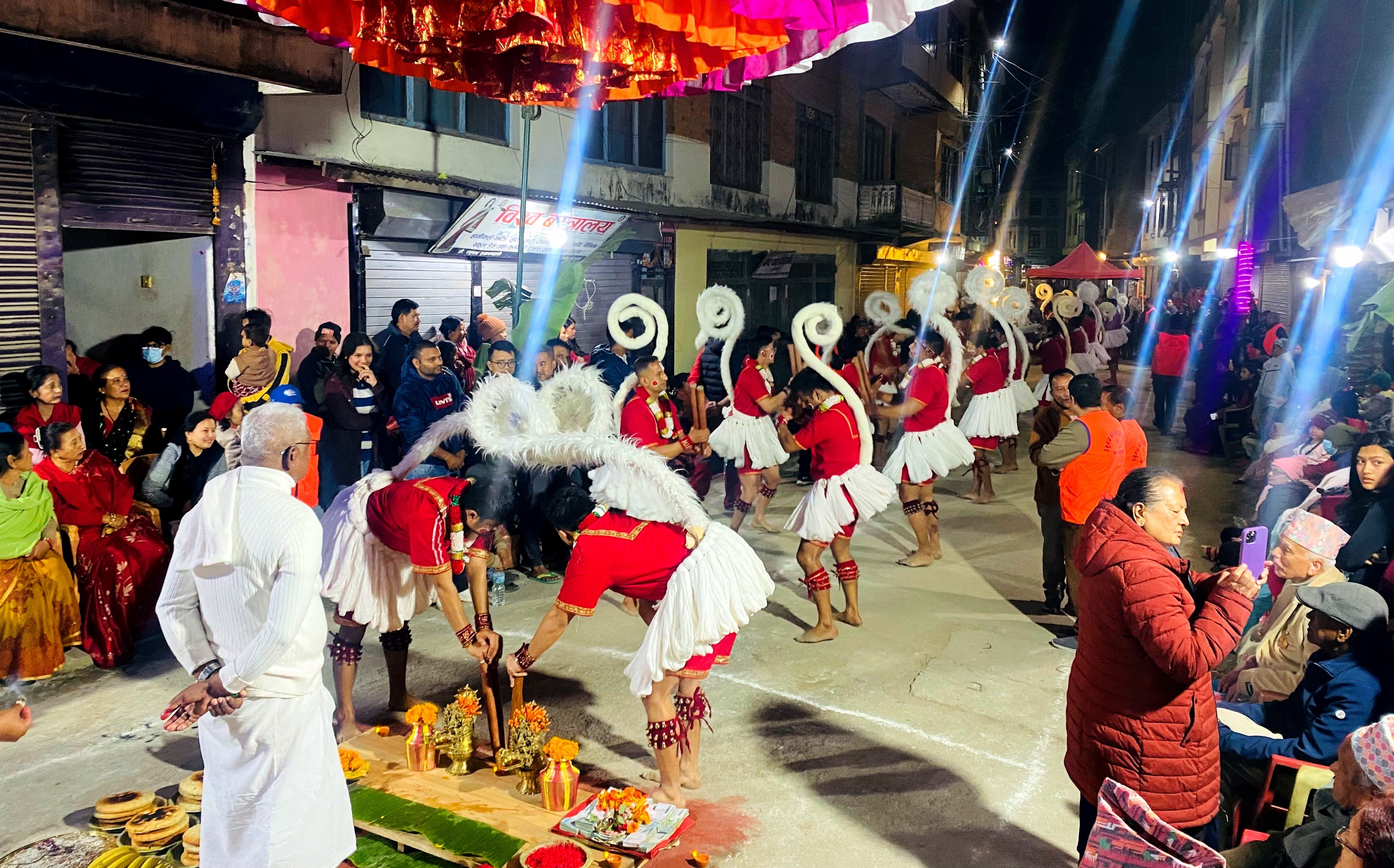 बागलुङ । गत शनिबारको छिपिँदो साँझसँगै सुरु भएको ऐतिहासिक हनुमान नाचले बागलुङ बजारको किनाराटोल उत्सवमय बन्यो । मानिसहरू अबेर रातिसम्मै ठेलमठेल भएर उक्त नाच हेरे । रैथाने संस्कृतिको आनन्द बटुले । लौरो जुझाउँदै मृदङ्ग र झ्यालीको तालमा नाचिरहेका कलाकारले दर्शकदीर्घाको मन जिते । नाच अवलोकनका लागि गण्डकी प्रदेशका स्वास्थ्यमन्त्री कृष्णप्रसाद पाठकसहितका विशिष्ट व्यक्तिहरू पनि किनाराटोल आइपुगेका थिए ।
