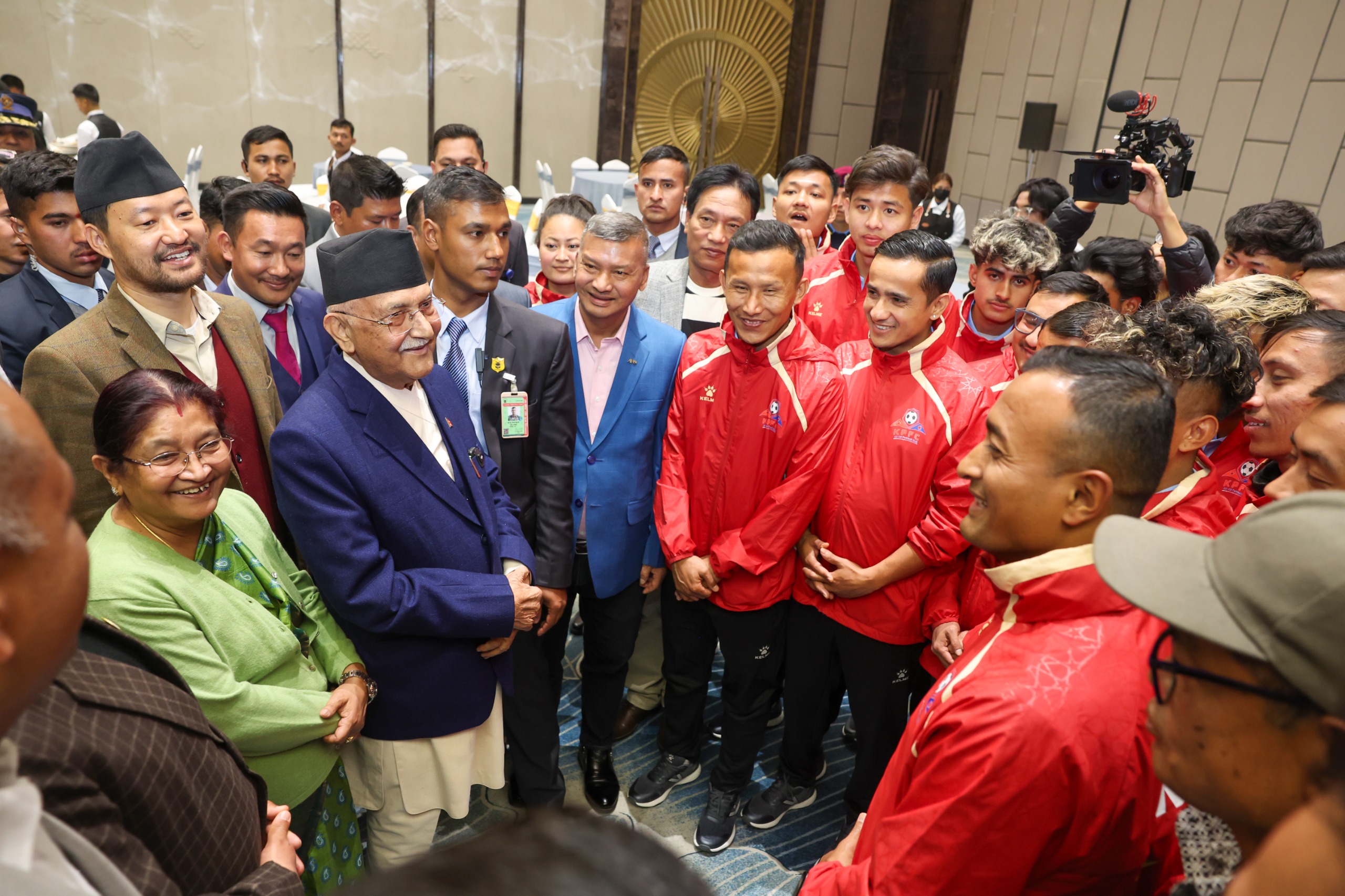 काठमाडौँ । प्रधानमन्त्री केपी शर्मा ओली र तेश्रो केपी ओली कप फुटबल च्याम्पियनसिपका खेलाडी तथा आयोजकबीच आज भेटघाट भएको छ ।