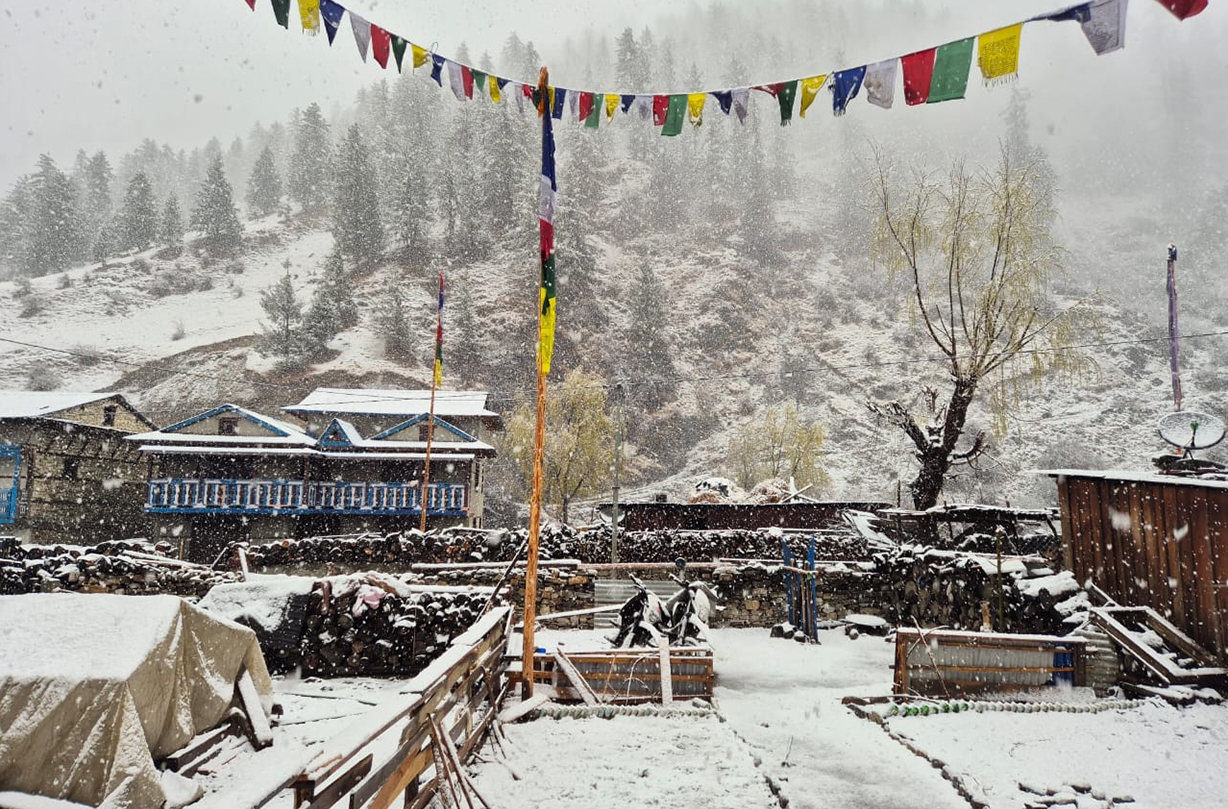 विशेष गरी कर्णालीको जुम्ला, हुम्ला, मुगु र डोल्पामा हिउँले ढपक्कै ढाकेको छ । हरेक वर्ष हिउँदमा हिमपात हुने कर्णालीका हिमाली जिल्लामा यस वर्ष भने ढिलोगरी हिउँ परेको जगदुल्ला गाउँपालिका डोल्पाका युवा भाष्कर बस्नेत बताउँछन् । ‘यहाँ यसरी हिमपात नभएको धेरै भएको थियो । हिजो बिहानै देखि निरन्तर हिमपात भइरहेको छ,’ बस्नेतले अनलाइनखबरसँग भने, ‘यसले गर्दा यार्सागुम्बा, जडीबुटी र खेतीपातीमा राम्रो प्रभाव पर्छ । कृर्षकहरु हर्षित छन् ।’