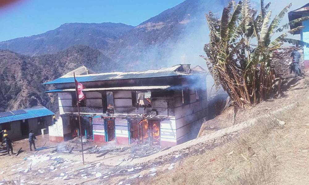 सोलुखुम्बु । सोलुखुम्बुको लिखुपिके गाउँपालिकाकाको भाडाको एक घरमा आगलागी भएको छ । लिखुपिके वडा नम्बर–३ काफ्लेचौरका रुद्रबहादुर खत्रीको घरमा भाडामा बसेको कार्यालय भवन आगोले जलेको हो ।