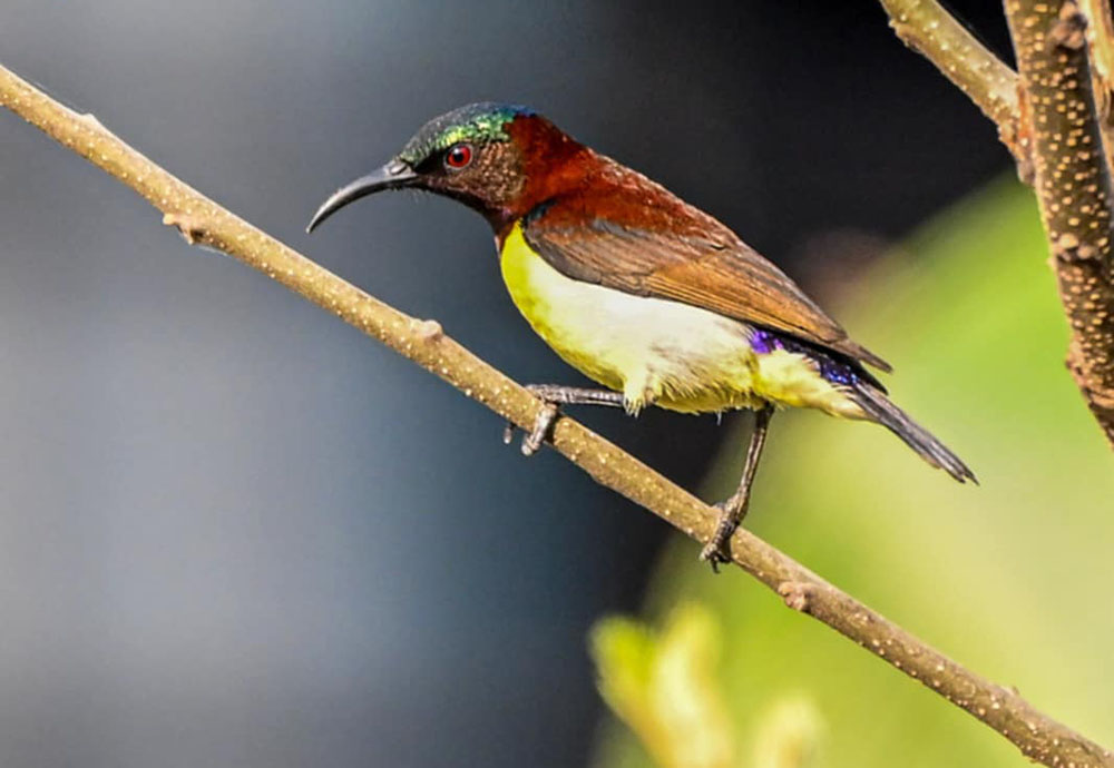 समुद्र सतहतबाट १३३ मिटर उचाइमा नेपालको लागि नयाँ प्रजातिको पर्पल रम्प्ड सनबर्ड चरा अभिलेख गरिएको नेपाल बर्ड रेकर्ड कमिटीका संयोजक डा। तुलसी सुवेदीले बताए। उनका अनुसार नेपालका चराविद् देवेन्द्रकुमार खरेलले चरा अवलोकनको क्रममा फागुन ७ गते बिहान ८ बजेर ३० मिनेटको समयमा चराको अभिलेख गरेको थिए।