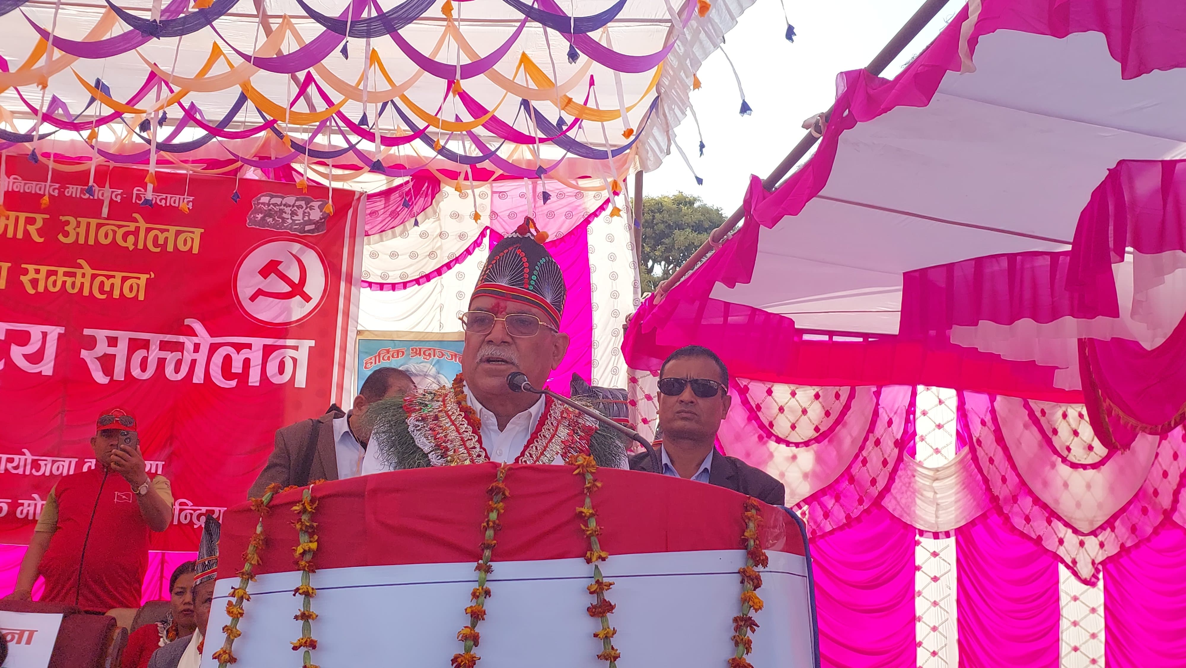 कैलालीको टीकापुरमा आजदेखि सुरु भएको थारु राष्ट्रिय मुक्ति मोर्चा नेपालको चौथो राष्ट्रिय सम्मेलनको उद्घाटन गर्दै उनले यस्तो धारणा राखेका हुन् । ‘जनताको बलिदानीपूर्ण आन्दोलनबाट संघीय लोकतान्त्रिक गणतन्त्र प्राप्त भएको छ, यसले उत्पीडित समुदाय र क्षेत्रका अधिकार सुनिश्चित गरेको छ’, अध्यक्ष प्रचण्डले भने, ‘अहिले आएर संघीयता, समावेशिता, समानुपातिक प्रतिनिधित्वजस्ता उत्पीडित क्षेत्र र समुदायले पाएको अधिकार खोज्ने कुचेष्टा हुँदैछ । भ्रष्ट र दलालहरु विभिन्न बहानामा जनताका अधिकार खोस्न लागिरहेका छन्, त्यस्तो सबै षड्यन्त्रलाई परास्त गर्दै जनताले प्राप्त गरेका अधिकारको रक्षा गर्ने जिम्मेवारी माओवादीकै हो, यसमा हामी कतै बिचलित हुने छैनौं, दृढ प्रतिबद्धताका साथ अघि बढ्ने छौं ।’