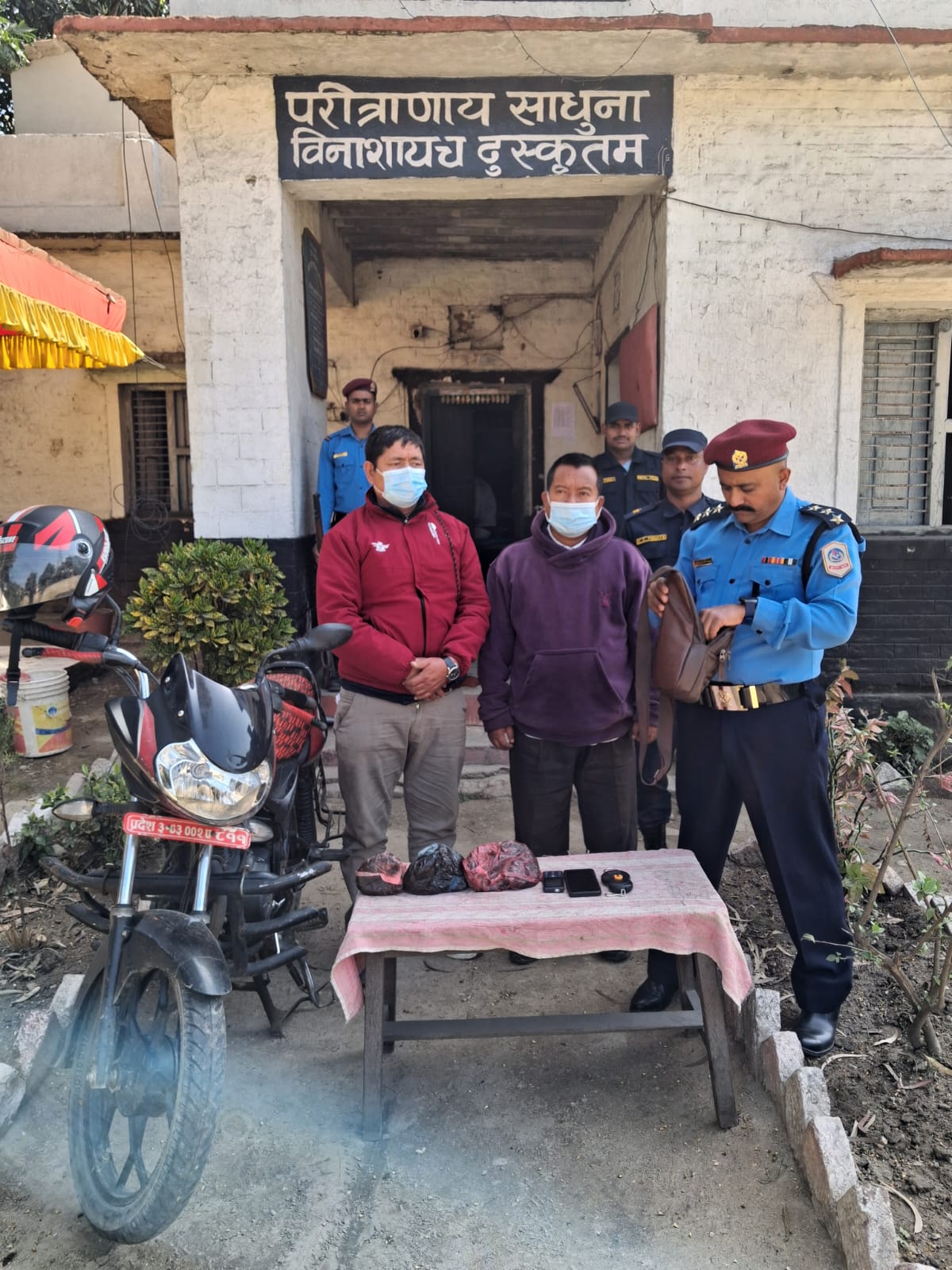 मोटरसाइकल चालक चितवन कालिका नगरपालिका-३ का ५० वर्षीय सञ्चलाल वाइबा र पछाडि सवार हेटौडा उप-महानगरपालिका-३ का ४८ वर्षीय हिरालाल वाइबा पक्राउ परेको पण्डितले जानकारी दिएका छन् ।