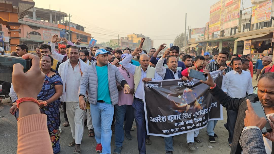 आईतवार दिउँसो नेकपा एमालेका केन्द्रीय सदस्य अजय कुमार गुप्ता, नेपाली कांग्रेसका युवा नेता मेयर प्रत्याशी मोहन प्रसाद यादवसहित दर्जनौं मानिस गौर नगरपालिका अगाडी टायर बालेर प्रदर्शन गरेका छन्। प्रदर्शनको क्रममा 'गौरका तस्कर मेयर मुर्दाबाद अमरेश सिंह जिन्दाबाद, राइस मिल बेच्न पाईंदैन' भन्दै चर्को नाराबाजी गरेका थिए।