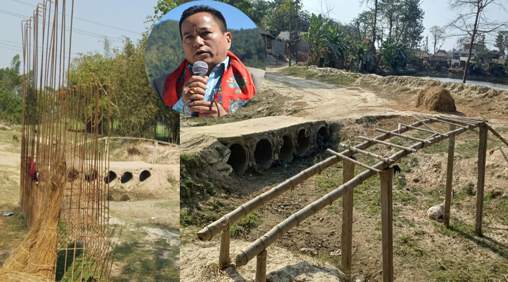 तर, सुरुको एक वर्षपछि ठेकेदारले काम नगरेको उनले जानकारी दिए । पुलको देब्रेतर्फ निर्माण गरिएका संरचना एक मिटर भासिएको भन्दै पुलको डिजाइनमै समस्या भएको निर्माण कम्पनीको दाबी छ ।