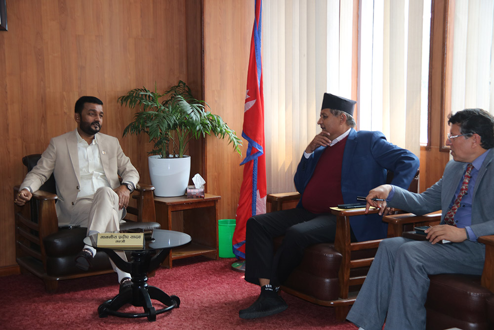 काठमाडौँ । खानेपानीमन्त्री प्रदीप यादव तथा लुम्बीनी प्रदेशका मुख्यमन्त्री चेतनारायण आचार्यबीच आज मन्त्रालयमा भेटर्वार्ता सहित लुम्बीनी प्रदेशमा हाल सञ्चालनमा रहेका विभिन्न खानेपानी आयोजनाका विषयमा छलफल भएको छ ।