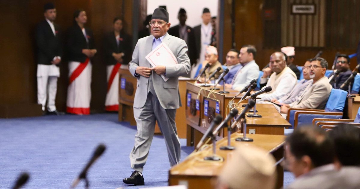 मैले यही सदनमा पछिल्लोपटक विश्वासको मत लिंदै गर्दा भनेको थिएँ आत्मसमीक्षासहित, गल्ती हाम्रा पनि भए । हामी सबैले आफ्नो आत्मसमीक्षा गरेर जनताप्रति जवाफदेही हुने प्रक्रियाको सुरुवात गरेनौं भने आउने दिन झन् जटिल हुन्छज्र भनेर भनेको थिएँ । अहिले सरकार र सरकारी संयन्त्रमा बसेका साथीहरुले बडो घमण्ड गरेको सुनिन्छ, सरकार यो गर्दैछ, त्यो गर्दै छ । तर, दुई तिहाईको घोडा कसले दौडाएको छ ? मैले त्यतिबेला पनि भनेको थिएँ, अहिले पनि जोड दिएर भन्न चाहन्छु, सरकारको दुई तिहाईको घोडा प्रधानमन्त्री र मन्त्रीले चलाएको मैले देखेको छैन । त्यो घोडा विचौलियाहरुले चलाएका छन् । तपाईले गर्ने नियुक्ति, तपाईहरुले गर्ने सेटिङ, तपाईहरुले गरेको मैले देख्दिनँ, ती त विचौलियाहरुले निर्णय गरेअनुसार भएको देखेको छु । म चुनौतीका साथ भन्न चाहन्छु, पछिल्ला आठ महिनाका एउटै नीति, एउटै निर्णय र एउटै नियुक्ति मलाई भनिदिनोस्, जसका पछाडि विचौलिया छैन । जम्मा एउटा उदाहरण दिए पनि हुन्छ । तपाईहरुका संयन्त्र, समिति, बैठक, यी सबै नाटक जस्ता मात्र देखिएका छन् । सत्ताको ड्राइभिङ सिटमै आज बिचौलिया छ । मेरो नेतृत्वको सरकार किन हट्यो भन्ने कुराको व्याख्या मैले पहिले नै गरिसकेको छु । विचौलियाको आँट र शक्तिले आज इमान्दार व्यवसायीलाई विचलित बनाएको छ, भोलि तपाईहरु विचलित हुनुहुनेछ ।