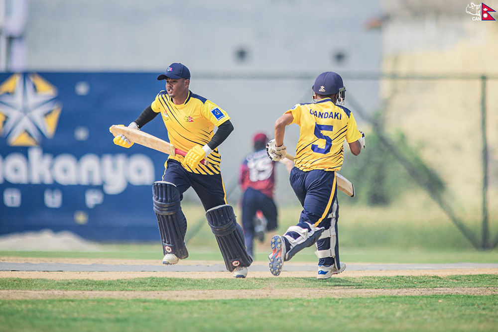 गण्डकीका कुनै पनि ब्याट्सम्यानले दोहोरो अंकमा रन बनाउन सकेका थिएनन् । चार ब्याट्सम्यान शुन्यमा आउट भएका थिए भने अर्जुन कुमालले सर्बाधिक ९ रन र सुजन गौतमले ६ रन बनाएका थिए ।