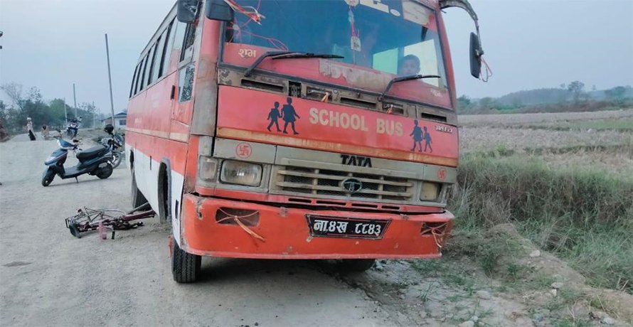विराटनगर । स्कुल बसको ठक्करबाट आइतबार साँझ मोरङमा १ जना बालिकाको मृत्यु भएको छ । साइकलमा यात्रा गरिरहेकी बालिकालाई स्कुल बसले ठक्कर दिँदा उनको मृत्यु भएको हो ।