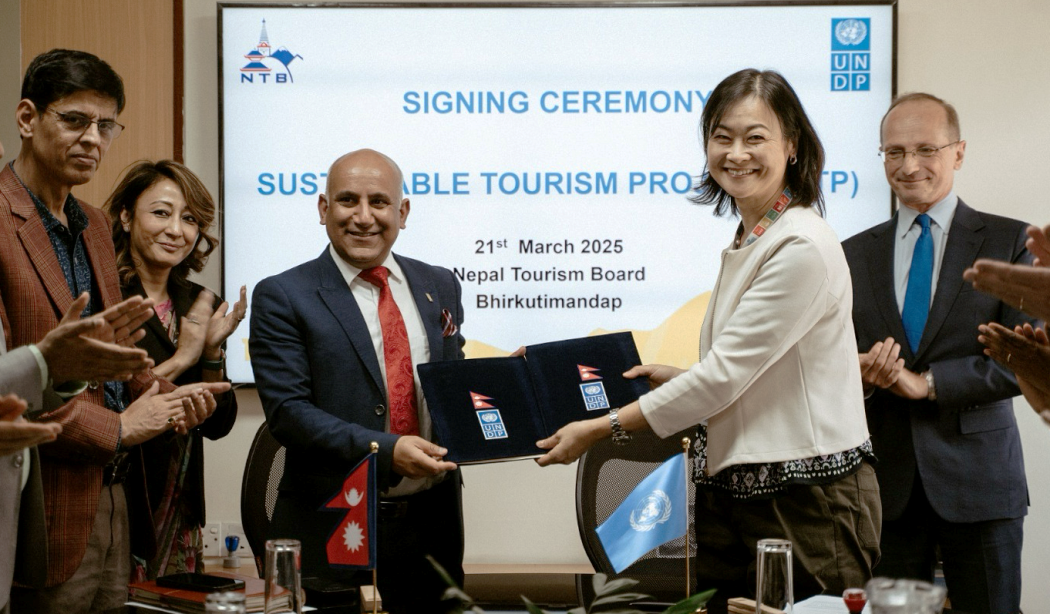 काठमाडौं । नेपाल पर्यटन बोर्ड र संयुक्त राष्ट्रसङ्घीय विकास कार्यक्रम (युएनडिपी) ले संयुक्त रूपमा ‘दिगो पर्यटन परियोजना (एसटिपी)’ कार्यक्रम सुरु गर्ने भएका छन् । आज यहाँ बोर्डमा आयोजित कार्यक्रममा सम्झौतापत्रमा हस्ताक्षर भएको हो ।