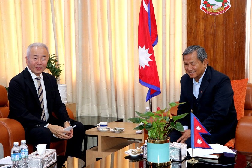 काठमाडौं । सञ्चार तथा सूचना प्रविधिमन्त्री पृथ्वीसुब्बा गुरुङसँग नेपालका लागि जापानका राजदूत तोरु मायदाले शिष्टाचार भेट गरेका छन् । नेपाल सरकारका प्रवक्ता समेत रहेका मन्त्री गुरुङले मन्त्रालयस्थित आफ्नै कार्यकक्षमा नवनियुक्त राजदूत मायदालाई स्वागत गर्दै नेपालको विकासका प्राथमिकताका क्षेत्रमा जापानी लगानी आकर्षित गर्ने ठूलो सम्भावना रहेको उल्लेख गर्दै जापानका लगानीकर्तालाई नेपालमा लगानी गर्न थप प्रोत्साहन गर्न अनुरोध गरे ।
