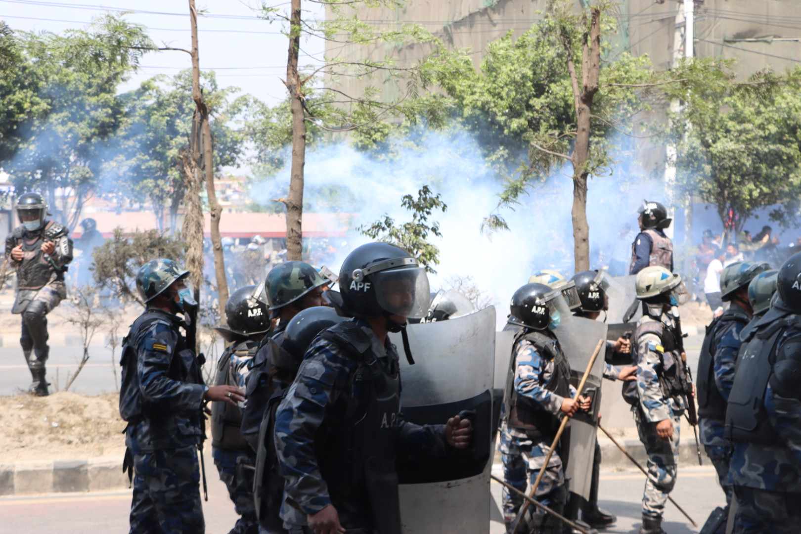 राजसंस्थाको पक्षमा आन्दोलन गरिरहेकाहरूमाथि प्रहरीले लाठी चार्ज गर्नुका साथै अश्रुग्यास प्रहार गरेको छ।
