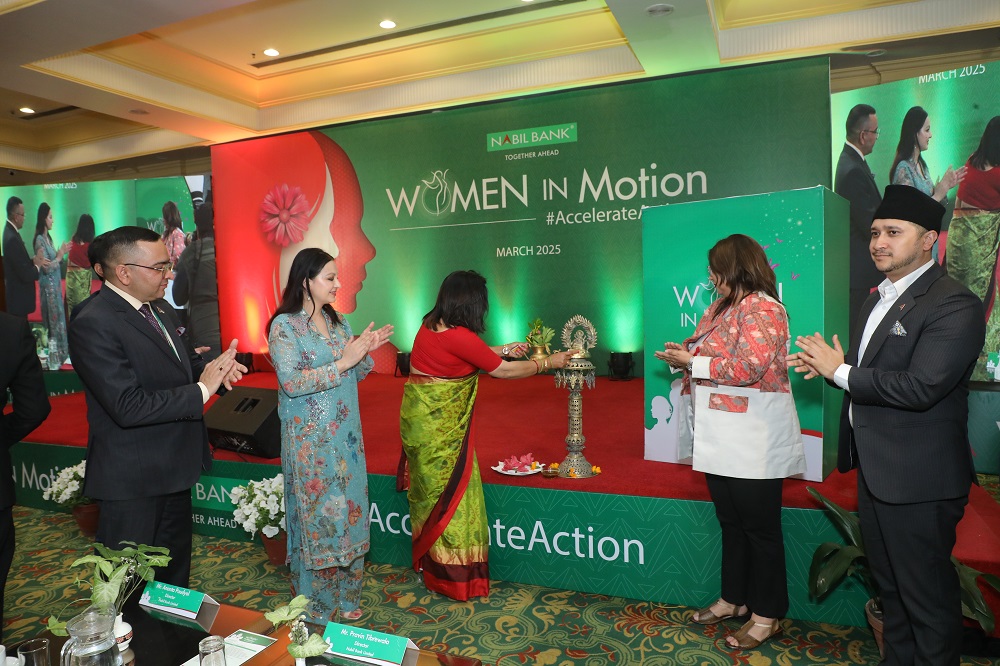 काठमाडौँ । नबिल बैंकले सोमबार काठमाडौँमा ‘वुमन इन मोसन–एक्सिलेरेट एक्सन’ कार्यक्रम सम्पन्न गरेको छ । महिला सशक्तीकरण, क्षमता अभिवृद्धि, समावेशिता, लैङ्गिक समानता तथा सचेतना अभिवृद्धि गर्ने उद्देश्यका साथ नबिल बैंकले उक्त कार्यक्रमको आयोजना गरेको हो ।